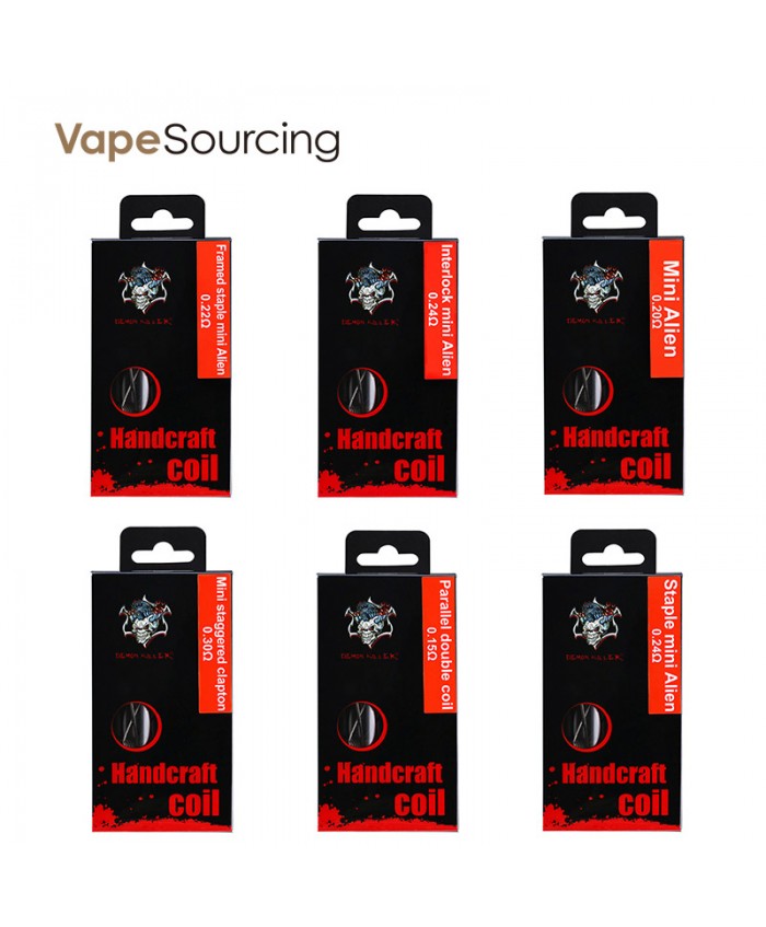 Demon Killer Handcraft Coil Kit includes two pieces of handmade heating wire and coil cleaning tools. High-grade and exquisite, delicate taste, a high degree of smoke oil reduction. The unique soft brush does not hurt the silk, easy to clean, and it is like new after cleaning. Six kinds of wire coils for optional: Mini staggered Clapton, Parallel double coil, Interlock mini Alien, Staple mini Alien, Mini Alien, Framed staple mini Alien. All of them are made of Ni80.