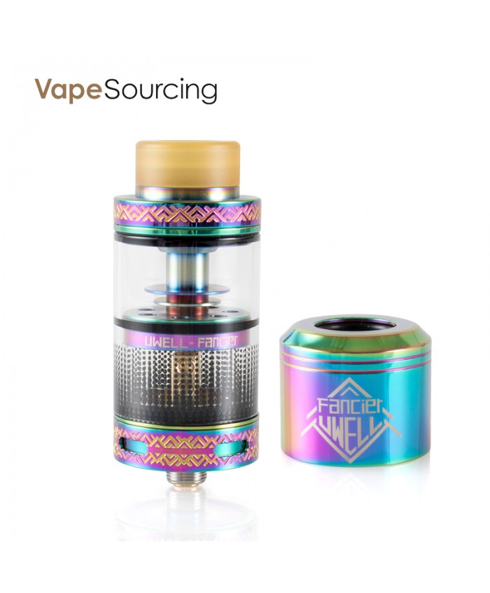 Uwell Fancier RTA/RDA Tank is an innovative tank atomizer from Uwell. You can use it as an RTA or exchange the glass with the top cap and use it as an RDA. With the innovative downward wicking and large refilling slot, Fancier RTA has the fewer dry problem and is much easier to be refilled than before. Also, Uwell Fancier RDA will not have the problem of spitback annoyance with the unique cross plate. There are 4 adjustable bottom airflow holes for the different flavor and vapor. Get the powerful Uwell Fancier RTA/RDA for the best vape. 6 colors available.